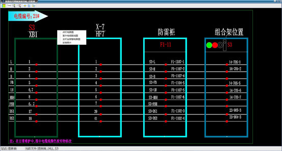 該系統(tǒng)可設(shè)計(jì)、繪制出規(guī)范的電纜徑路圖,并對(duì)完成的電纜徑路圖進(jìn)行自動(dòng)識(shí)別,如各條主電纜的徑路結(jié)構(gòu)、箱盒類(lèi)型、連接設(shè)備的